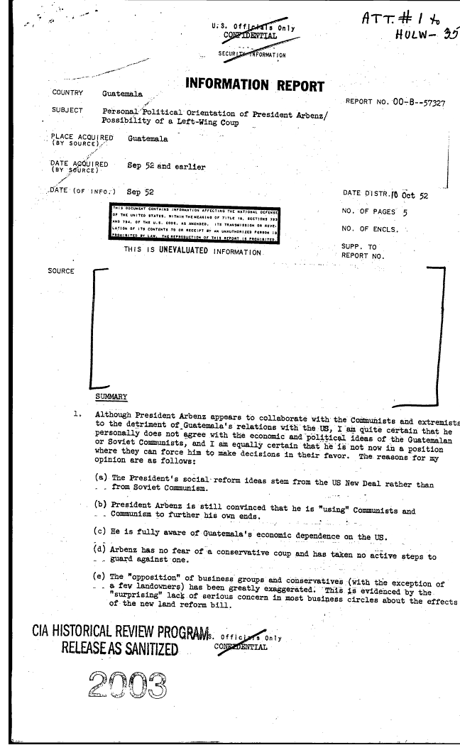 paternalistic social reforms. Arbenz' personal idol is FDR and his