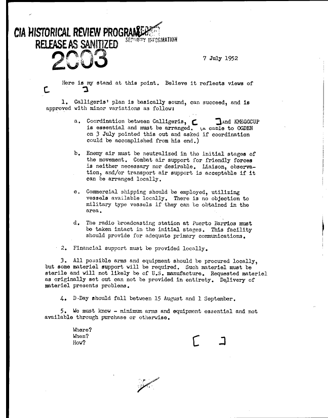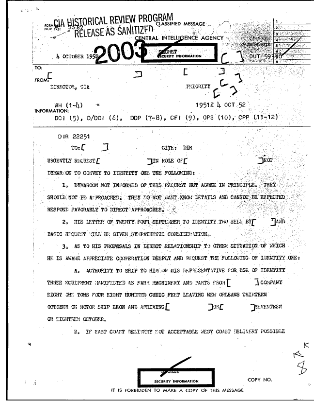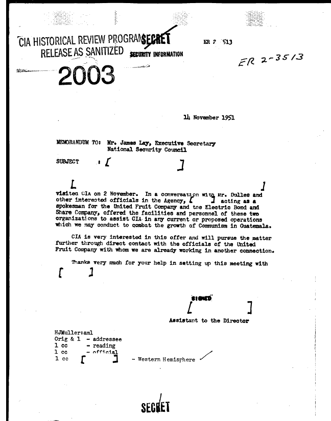 In a conversation with Dr. Dulles and other interested officials in the Agency, [REDACTED] acting as a spokesman for the United Fruit Company and the Electric