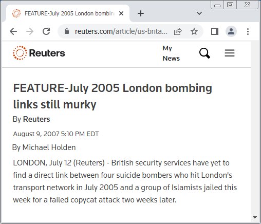 "British security services have yet to find a direct link between four suicide bombers who hit London’s transport network in July 2005 and a group of Islamists jailed this week for a failed copycat attack two weeks later."